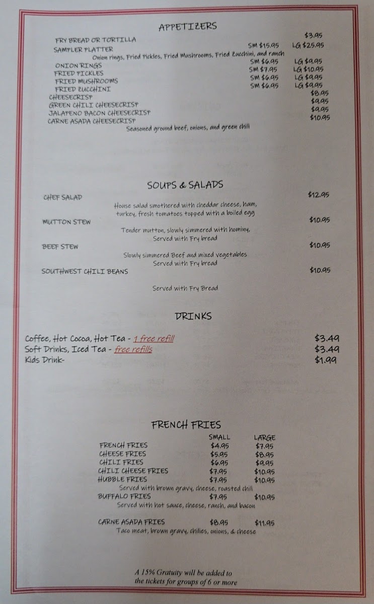 Keams Canyon Cafe Menu